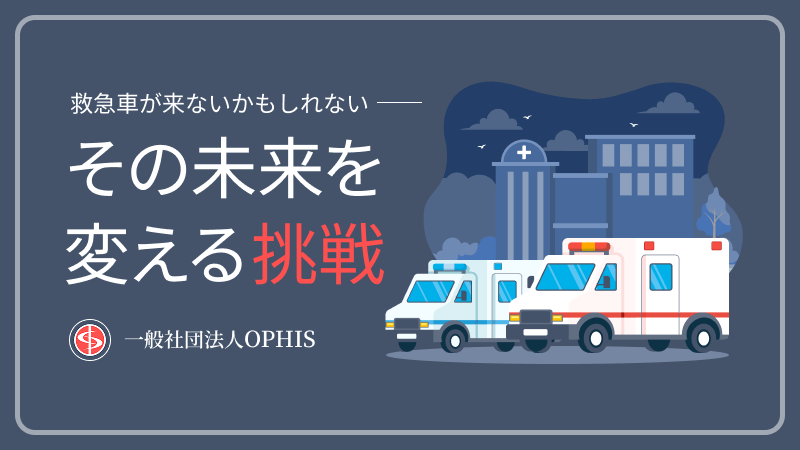 119番通報で「救える命が救われる」社会を持続させることが、OPHISの使命です。その手段として「官民連携型救急搬送システム」の構築があります。本活動を通じて、地域における救急搬送体制が見直され、市民が安心して暮らせる街をつくりたいと思っています。