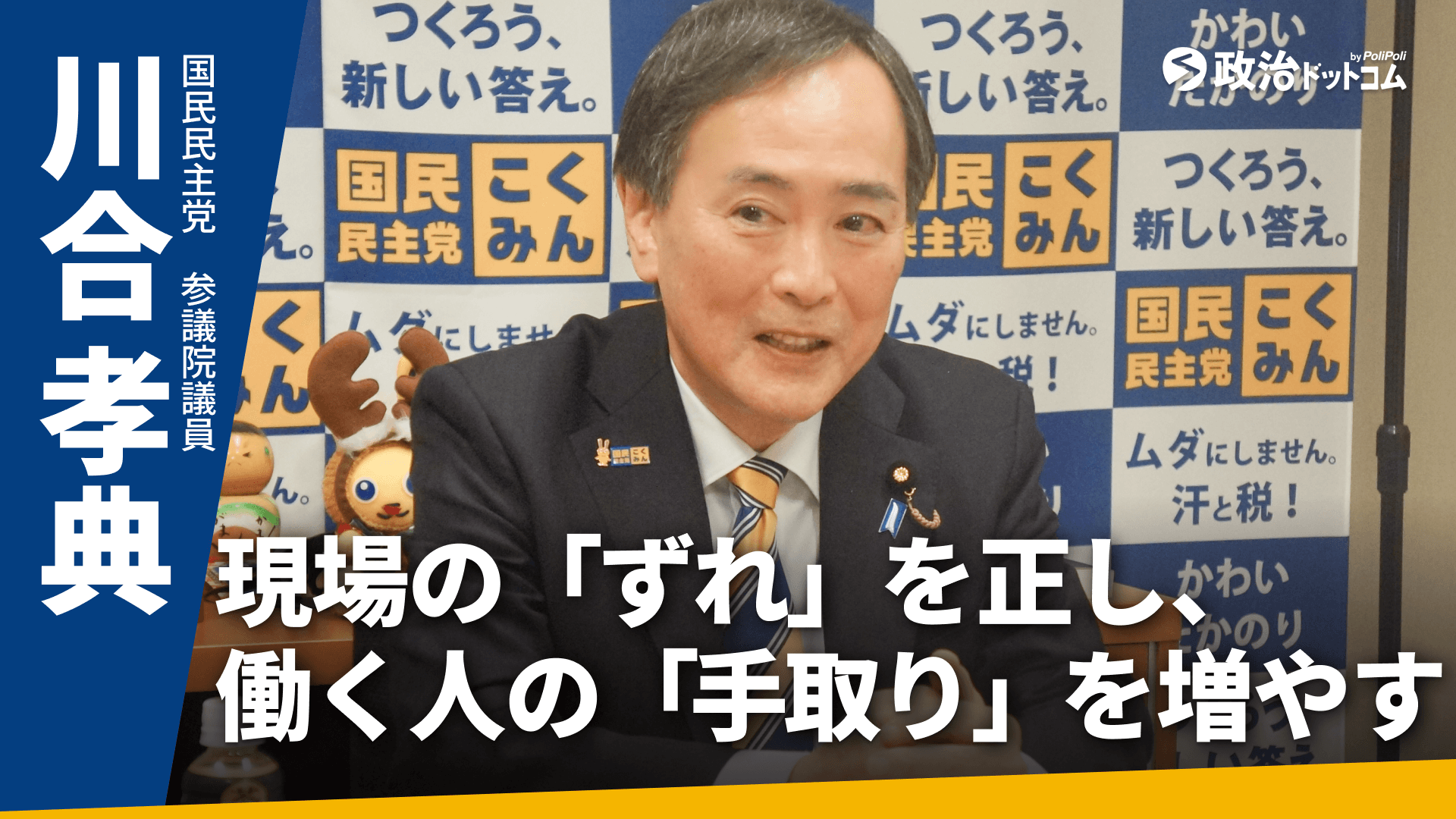物流業界が直面する「2024年問題」や、現役世代の生活を直撃する「年収の壁」など、日本社会は数多くの構造的課題を抱えています。今回は、民間企業や労働組合(UAゼンセン)での現場経験を持ち、一貫して「働く人」の視点から政策立案を続けている国民民主党の川合孝典議員にお話を伺いました。