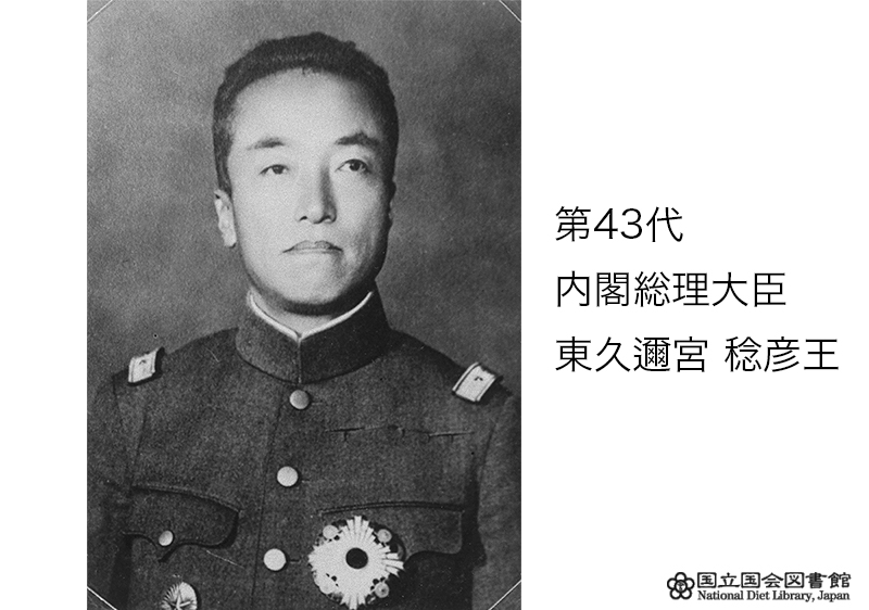 初の皇族内閣となった第43代東久邇宮稔彦王氏は、わずか54日の総理大臣期間を過ごした後に公職追放となり、臣籍降下もしています。